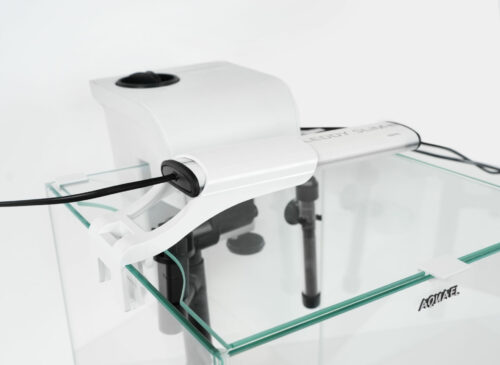 Osvětlení v sadě FISH & SHRIMP SET DUO zajišťuje univerzální LED lampa LEDDY SLM DUO SUNNY & PLANT, namontovaná na hraně skla nádrže. Lampa má dvě řady LED diod o celkovém výkonu 10 W (2 × 5 W). Polovinu tvoří diody SUNNY vyzařující světlo podobné slunečnímu (barevná teplota 6500 K) a druhou polovinu diody PLANT, speciálně navržené pro potřeby rostlin (barevná teplota 8000 K). Lampa poskytuje komplexní osvětlení celé nádrže, dokonale zvýrazňuje barvy aranžmá a zajišťuje rychlý a nerušený růst rostlin. Její použití umožňuje dosáhnout jedinečného dekorativního efektu a zároveň přináší značné úspory díky nízké spotřebě energie a absenci nutnosti časté výměny.