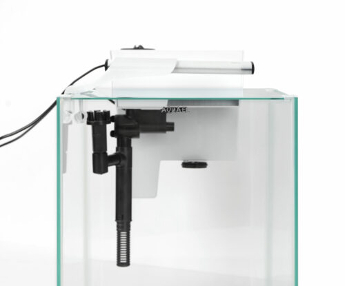 FISH & SHRIMP SET DUO doplňuje sady pro krevety SHRIMP SET z portfolia AQUAEL. Skládá se z moderní nádrže slepené transparentním silikonem, s tvarem podobným kostce a rozměry 35 × 35 × 40 cm (objem 49 l), která je vybavena skleněným krytem s výřezem pro instalaci závěsného filtru. Kryt je vybaven systémem SMART OPEN – po nadzvednutí zůstává ve svislé poloze zavěšený na háčku zadní stěny akvária. Součástí sady je také ochranná pěnová podložka, která chrání dno akvária.