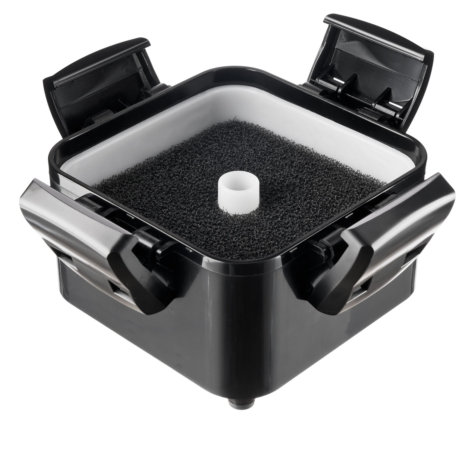 Každou komoru lze naplnit libovolnými filtračními médii Aquael, jako jsou BioCeraMAX, ZeoMAX Plus, CarboMAX, filtrační houby nebo vata. Díky tomu je možné nastavit filtraci přesně podle typu akvária — rostlinného, společenského, biotopního nebo s vysokými nároky na průzračnost vody.